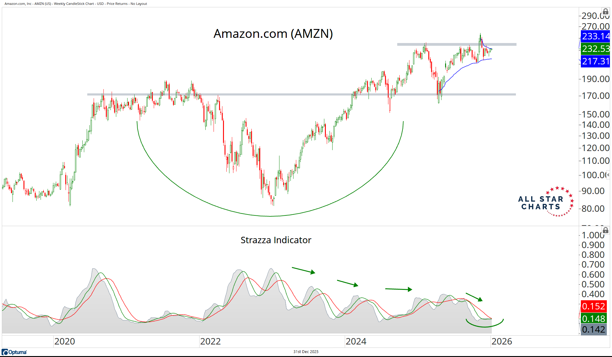 Amazon has been coiling in a tight range against its pre-tariff selloff highs.
