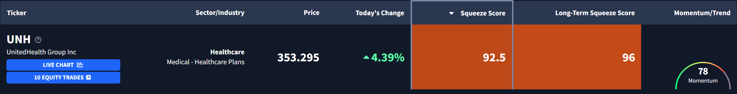 UnitedHealth Group $UNH is currently exhibiting a Squeeze Score of 92.50 and an even tighter Long-Term Score of 96.