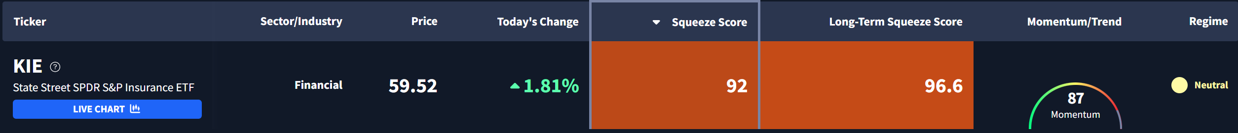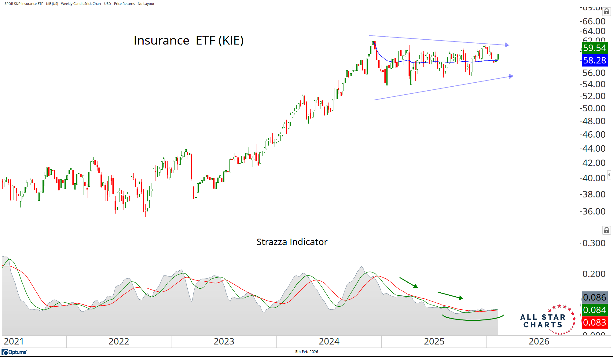 The Squeeze Watch (02/05/2026) February 5, 2026 Welcome to The Squeeze Watch.We’re very excited to present our Squeeze Engine, one of the main tools that powers the success of Breakout Multiplier.As rotation into defensives continues, we turn to one of the most defensive areas within Financials: Insurance.Here’s today’s standout: The Insurance $KIE is currently exhibiting a Squeeze Score of 92 and an even tighter Long-Term Squeeze Score of 96.60. Here's what the chart looks like: The Insurance Industry ETF is coiled in a multi-year range, defined by a clean series of higher lows and lower highs.Volatility on the weekly Strazza Indicator is compressed near multi-year lows.The primary trend for Insurance remains bullish, and continued defensive rotation could provide the catalyst needed to launch a breakout higher.If you want access to our Squeeze Engine and our next defensive rotation trade, join Breakout Multiplier here, risk-free.This is not a trade alert. - Breakout Multiplier Team Squeeze Watch More from Squeeze Watch The Squeeze Watch (02/04/2026) February 4, 2026 The Squeeze Watch (02/03/2026) February 3, 2026 The Squeeze Watch (02/02/2026) February 2, 2026 Catch Today’s Top BreakoutsSqueeze Watch delivers high-probability setups and breakout patterns across sectors — giving traders a daily advantage with data-driven opportunities. You must have JavaScript enabled to use this form. Email More from Breakout Multiplier Breakout Multiplier Join Today The Open Bar Watch Now
