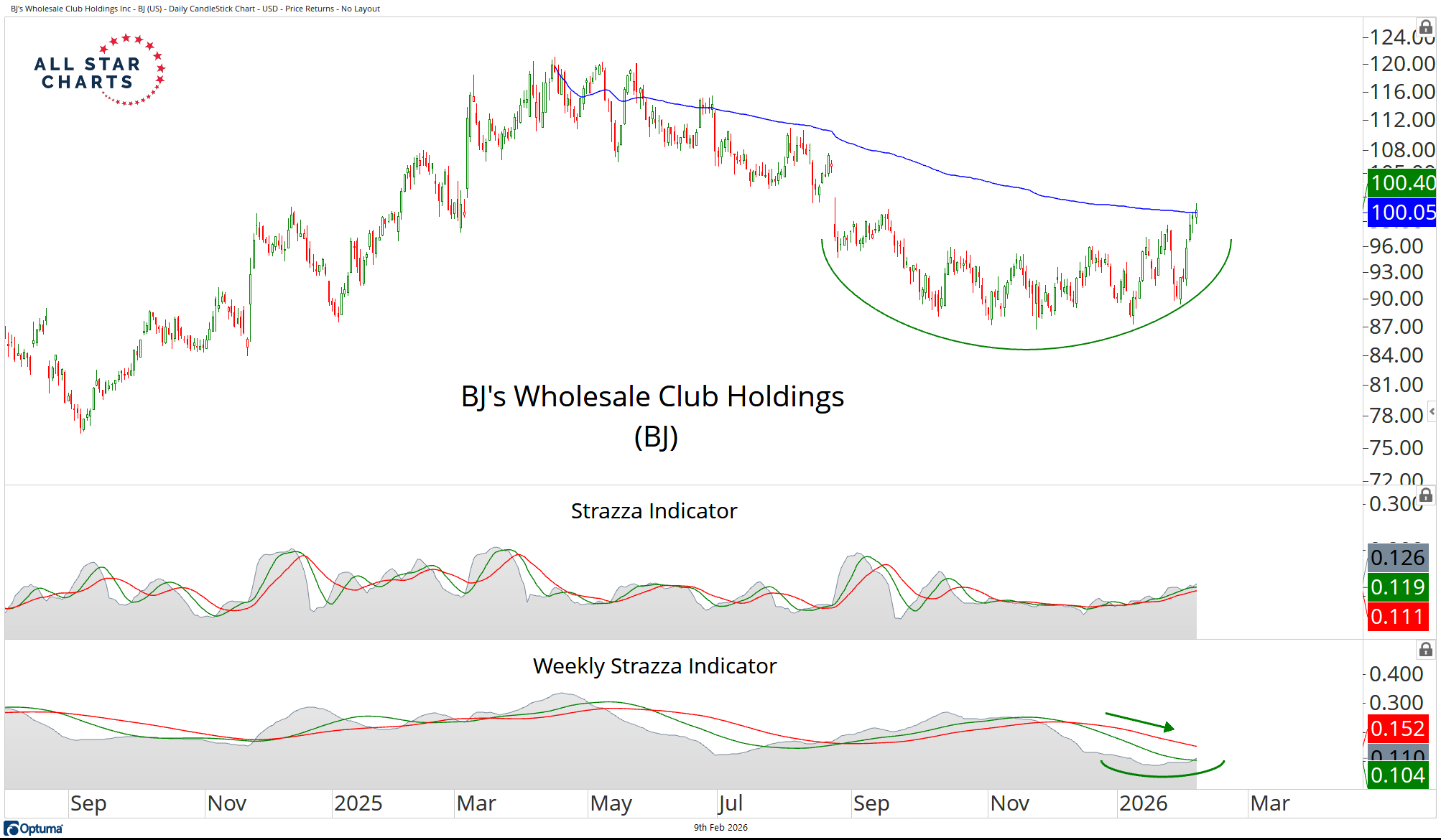 BJ’s is exhibiting all the hallmarks of a textbook volatility squeeze setup.
