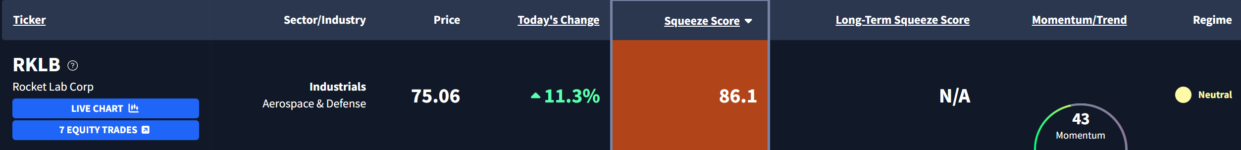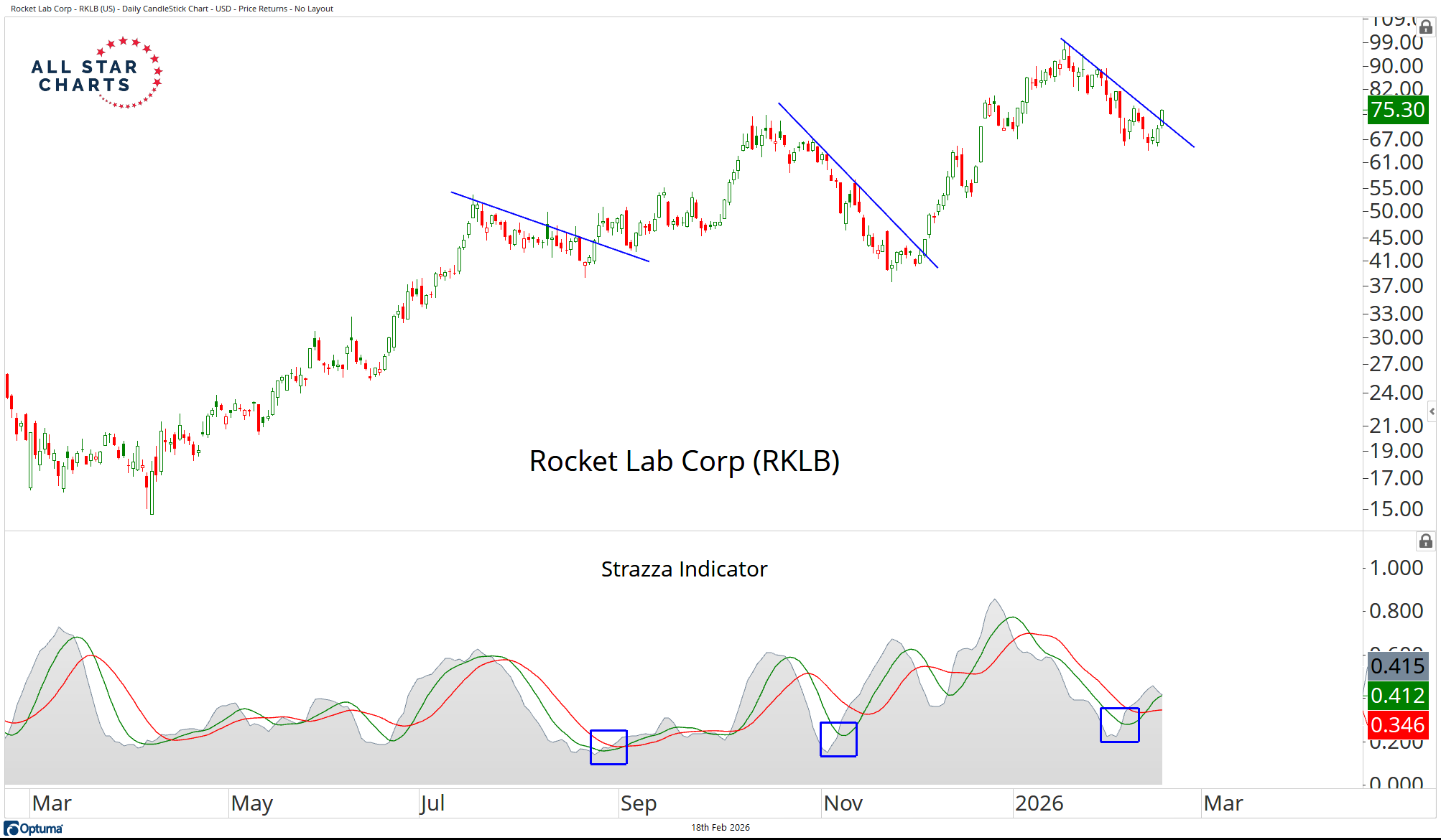 The Squeeze Watch (02/18/2026) February 18, 2026 Welcome to The Squeeze Watch.We’re very excited to present our Squeeze Engine, one of the main tools that powers the success of Breakout Multiplier.Space stocks continue to stand out as a pocket of strength within the speculative growth arena.If and when this corrective wave ends, the groups that held up best during the downturn are often the ones that lead the next advance.Here’s today’s standout: Rocket Lab Corp $RKLB is currently exhibiting a Squeeze Score of 86.10.Here's what the chart looks like: RKLB continues its ascent. Along the way, consolidations have taken the shape of orderly pullbacks. Now, the stock is setting up to resolve a similar pattern to the ones we’ve seen play out repeatedly over the past 12 months.Volatility has begun to expand on the Strazza Indicator—a sign that often precedes a larger directional move.We have triggers lined up across our space stock universe, and some of those trades may even fire today.If you want access to our Squeeze Engine and our next space trade, join Breakout Multiplier here, risk-free.This is not a trade alert. - Breakout Multiplier Team Squeeze Watch More from Squeeze Watch The Squeeze Watch (02/17/2026) February 17, 2026 The Squeeze Watch (02/13/2026) February 13, 2026 The Squeeze Watch (02/12/2026) February 12, 2026 Catch Today’s Top BreakoutsSqueeze Watch delivers high-probability setups and breakout patterns across sectors — giving traders a daily advantage with data-driven opportunities. You must have JavaScript enabled to use this form. Email More from Breakout Multiplier Breakout Multiplier Join Today The Open Bar Watch Now