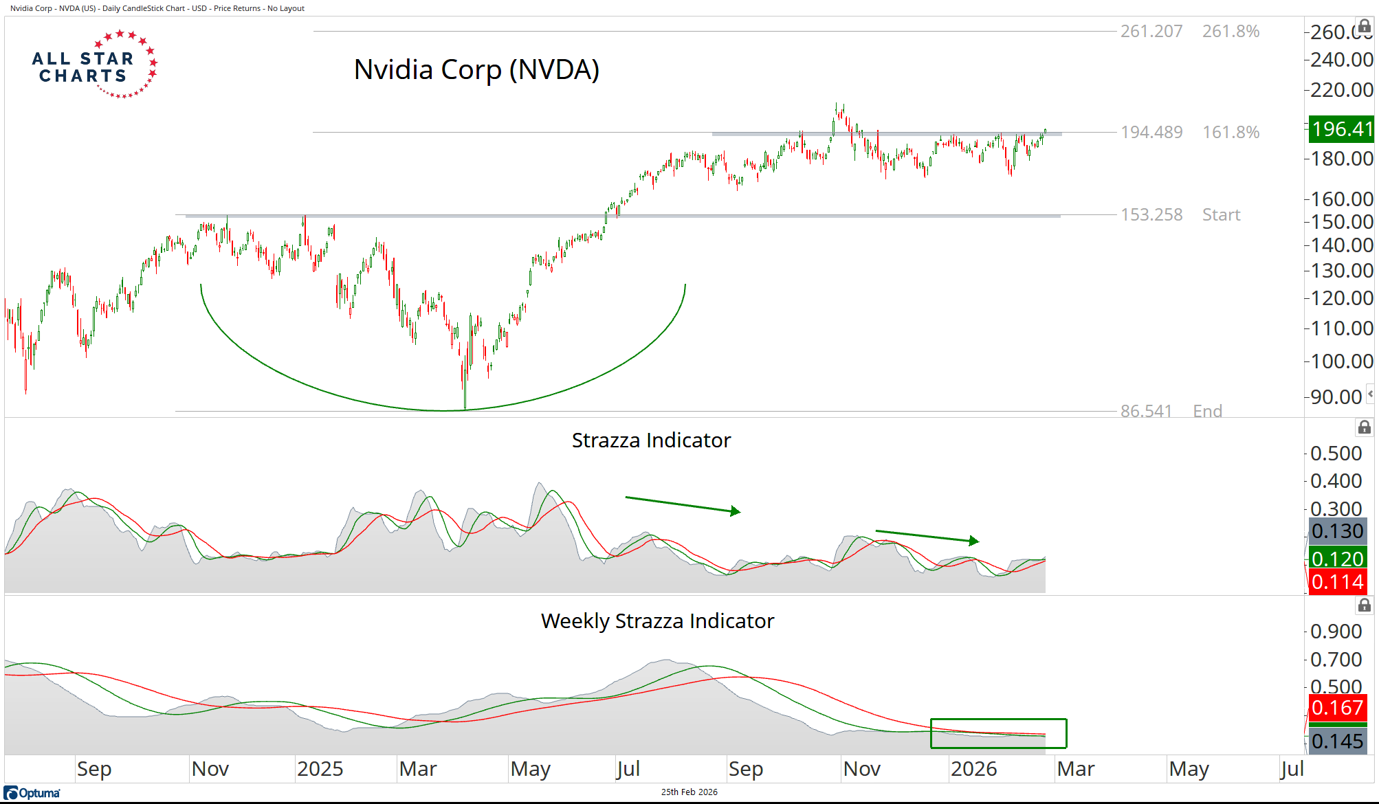 The Squeeze Watch (02/25/2026) February 25, 2026 Welcome to The Squeeze Watch.We’re very excited to present our Squeeze Engine, one of the main tools that powers the success of Breakout Multiplier.Most stocks report earnings with little fanfare. For years now, there has been one major exception.Here’s today’s standout: Nvidia Corp $NVDA is currently exhibiting a Squeeze Score of 90.8 and an even tighter Long-Term Squeeze Score of 97.8. Here's what the chart looks like: Nvidia’s relative strength amid the selloff in U.S. large-cap growth is hard to ignore. It’s still outperforming the major indices.At the same time, volatility is compressed across multiple timeframes—highlighting a coil with the potential to move more the entire market.They report after the bell today. Not long ago, these earnings releases were treated as the most important events in market history.If you want access to our Squeeze Engine and our next trade, join Breakout Multiplier here, risk-free.This is not a trade alert. - Breakout Multiplier Team Squeeze Watch More from Squeeze Watch The Squeeze Watch (02/24/2026) February 24, 2026 The Squeeze Watch (02/23/2026) February 23, 2026 The Squeeze Watch (02/20/2026) February 20, 2026 Catch Today’s Top BreakoutsSqueeze Watch delivers high-probability setups and breakout patterns across sectors — giving traders a daily advantage with data-driven opportunities. You must have JavaScript enabled to use this form. Email More from Breakout Multiplier The Open Bar Watch Now Breakout Multiplier Join Today