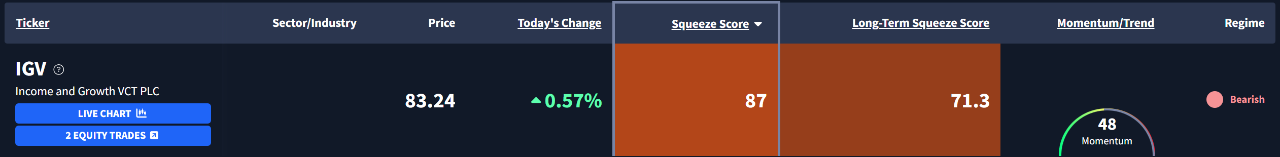 Software $IGV is currently exhibiting a Squeeze Score of 87.
