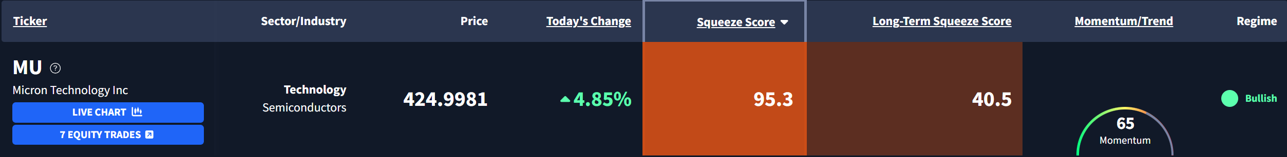 Micron Technology Inc $MU is currently exhibiting a Squeeze Score of 95.3.