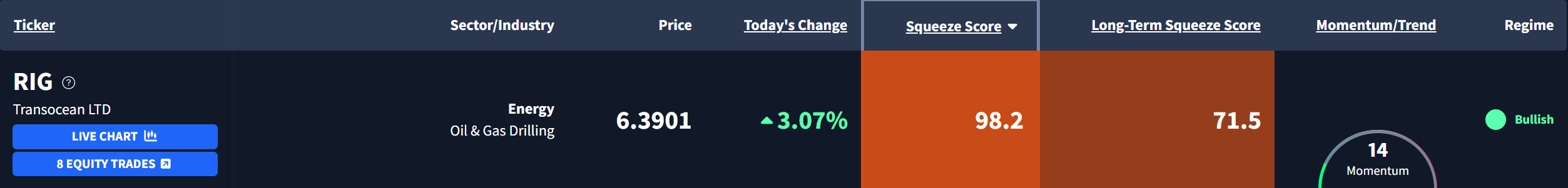 Transocean Ltd $RIG is currently exhibiting a Squeeze Score of 98.2.