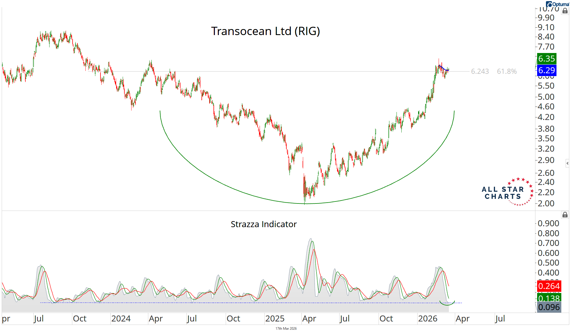Transocean is coiled tightly within the context of a deep reversal base.
