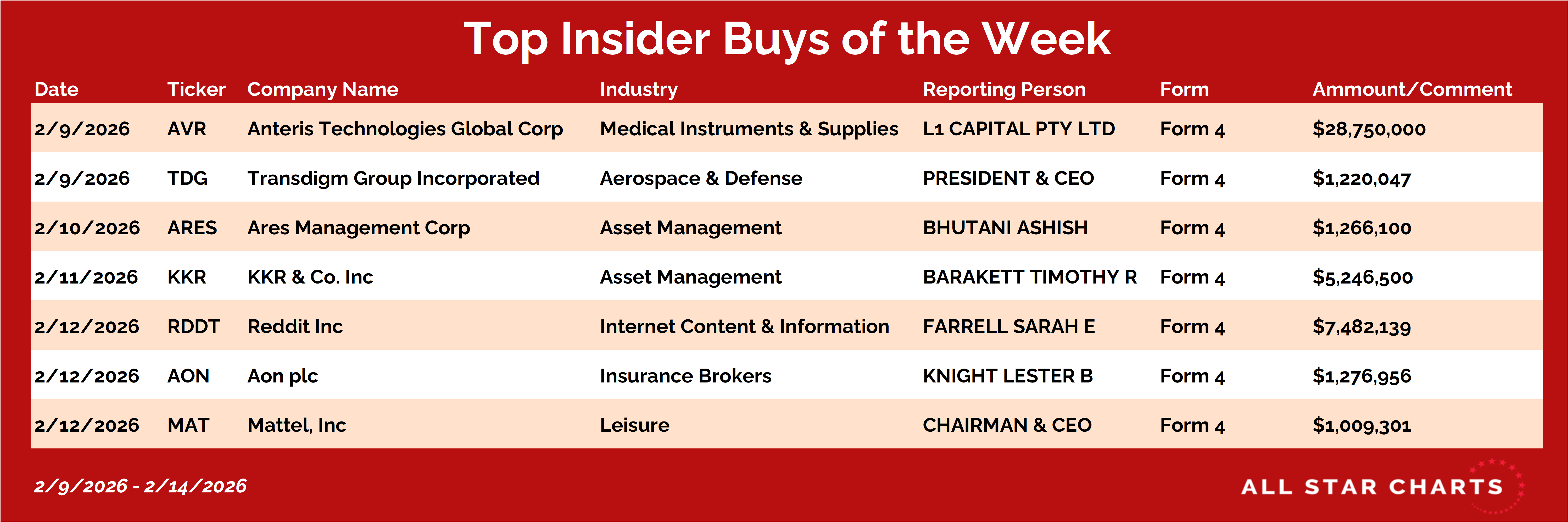 Every weekend, I dig into our insider filings tracker looking for the biggest conviction buys — and this week we saw activity across healthcare, aerospace, asset management, internet, insurance, and consumer names.