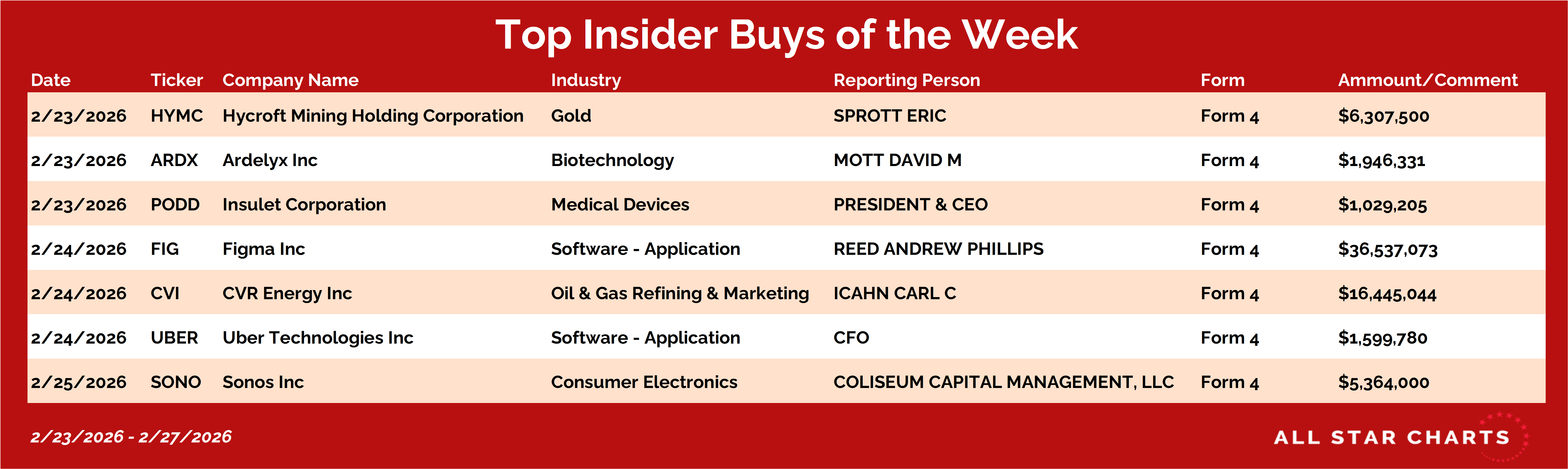 Every weekend, I dig into our insider filings tracker looking for the biggest conviction buys — and this week there was action in software, energy, gold and healthcare… all of which have been popular insider themes of late.