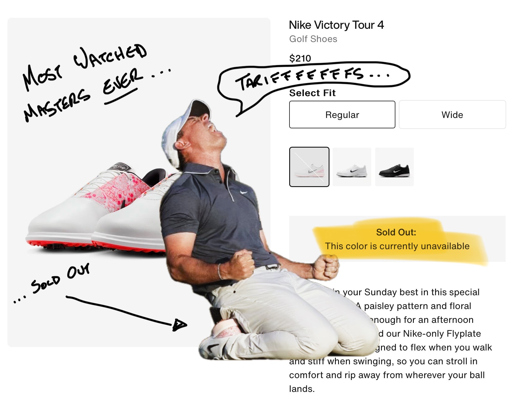 Rory McIlroy, bursting into tears at the realization he wore floral shoes all weekend and Nike doesn't even have them in stock (and won't for the foreseeable future).
