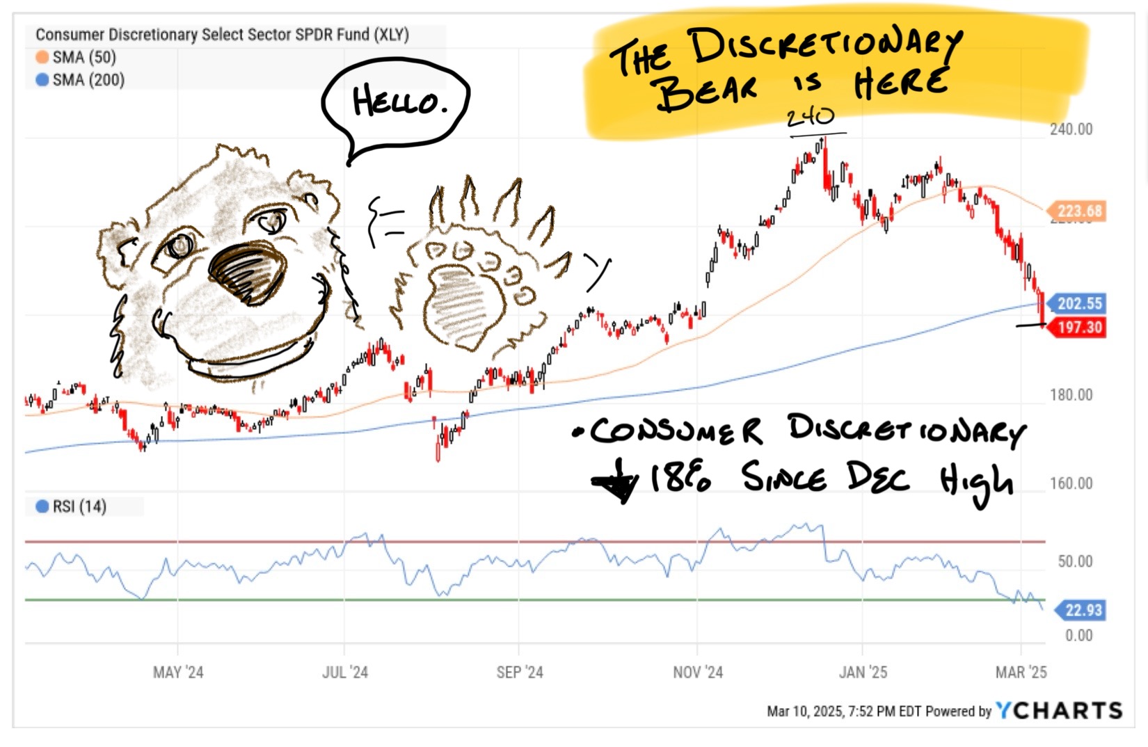The most harrowing bearish catalysts are also vague but real. No one has any real idea precisely how all this DOGE / Tariff / Trade War stuff is going to play out, exactly, but the consumer is freaking out and it's leading to immediate earnings hits with more to come. A recession is now seen as a coin-toss outcome, at best.