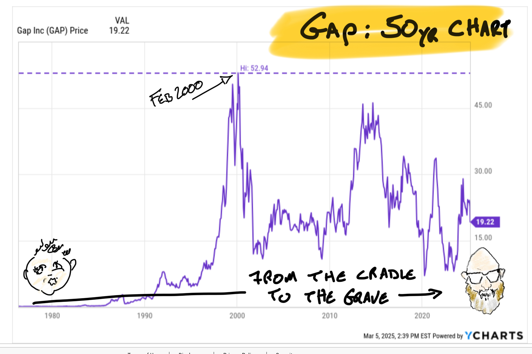 Lulu was $55 in 2016 and hit $500 in late 2013. The company created the modern retail model where e-commerce is a core element of the business, right from the start. While Gap was trying to strap e-commerce to the back of an overgrown store base Lululemon from tracking inventory with chips, making the app an indispensable and seamless part of the shopping experience. It's been a GD glorious run and I thank every vest-wearing Millennian banker in Anti-Ball-Crushing pants: