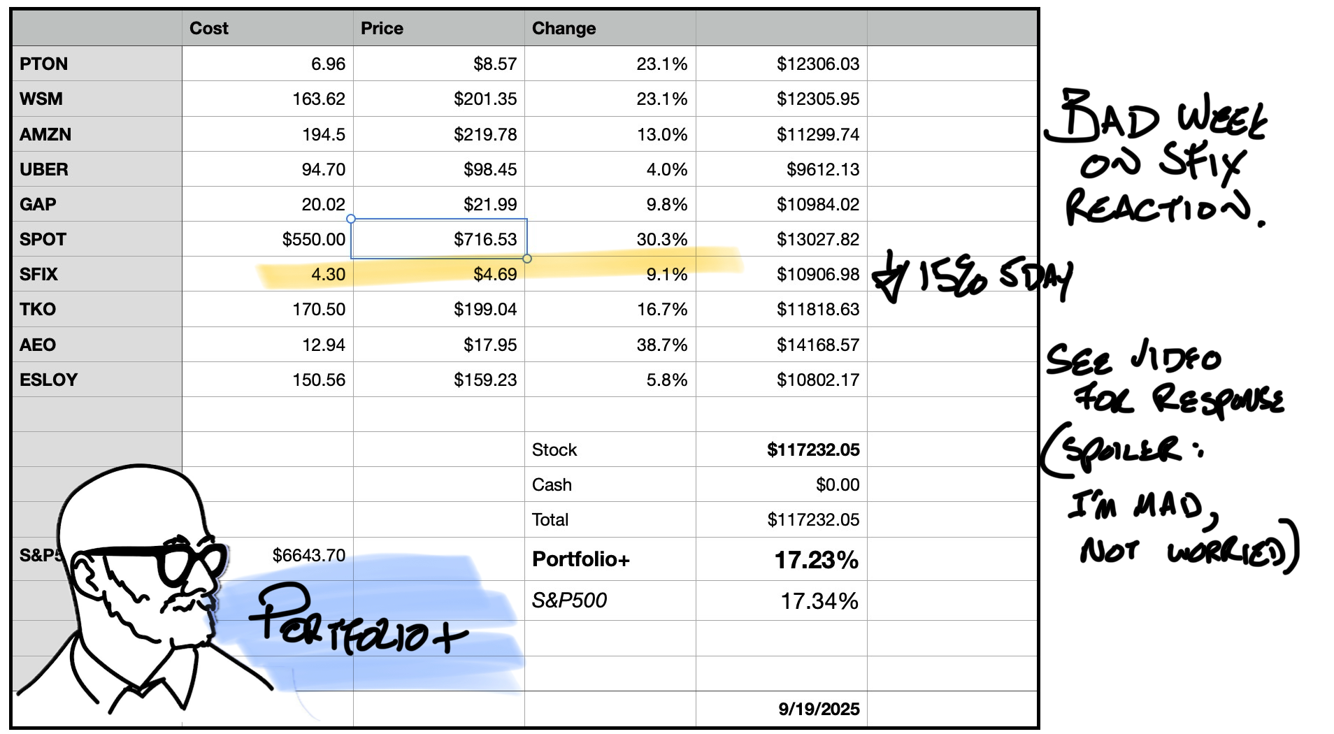 It was a lousy week for our stocks as Stitch Fix beat estimates, raised guidance, and then tumbled 15%. As I discuss in the video, we've seen this type of reaction before after their reports. Despite the market response, I thought it was a great report. Furthermore, the company's visibility appears to be increasing, evidenced by execs appearing on the Conference Circuit for the first time in recent memory, starting this month. Improving financials, a good narrative coming (”memberships grew” is the phrase that will pay), and an unbroken chart on support. I like to buy such stories. I’m willing to wait for the payoff.