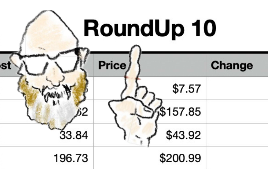 Another strong week for the Round-Up 10 Portfolio with gains last Friday (which now seems like a million years ago) taking us up to over 12% since our March 20 start date, handily beating the S&P500 and the XRT Consumer Discretionary ETF.